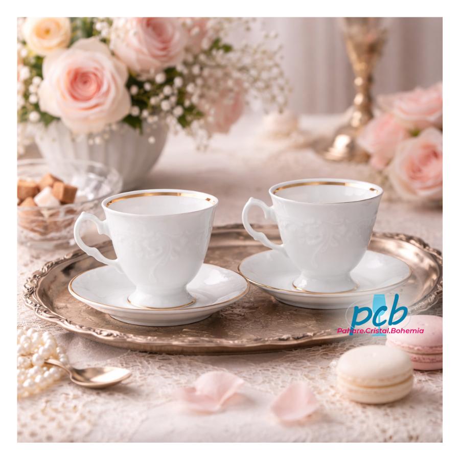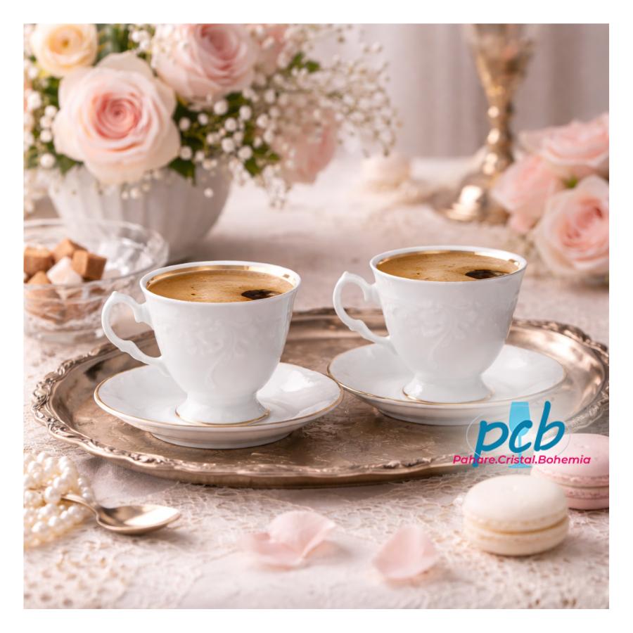 Setul pentru cafea din portelan gama CLARA prezinta un design elegant, fiind potrivit atat pentru utilizarea zilnica, cat si pentru ocazii speciale, fiind ideal pentru iubitorii de cafea care apreciaza atat functionalitatea, cat si estetica in servirea acesteia.
