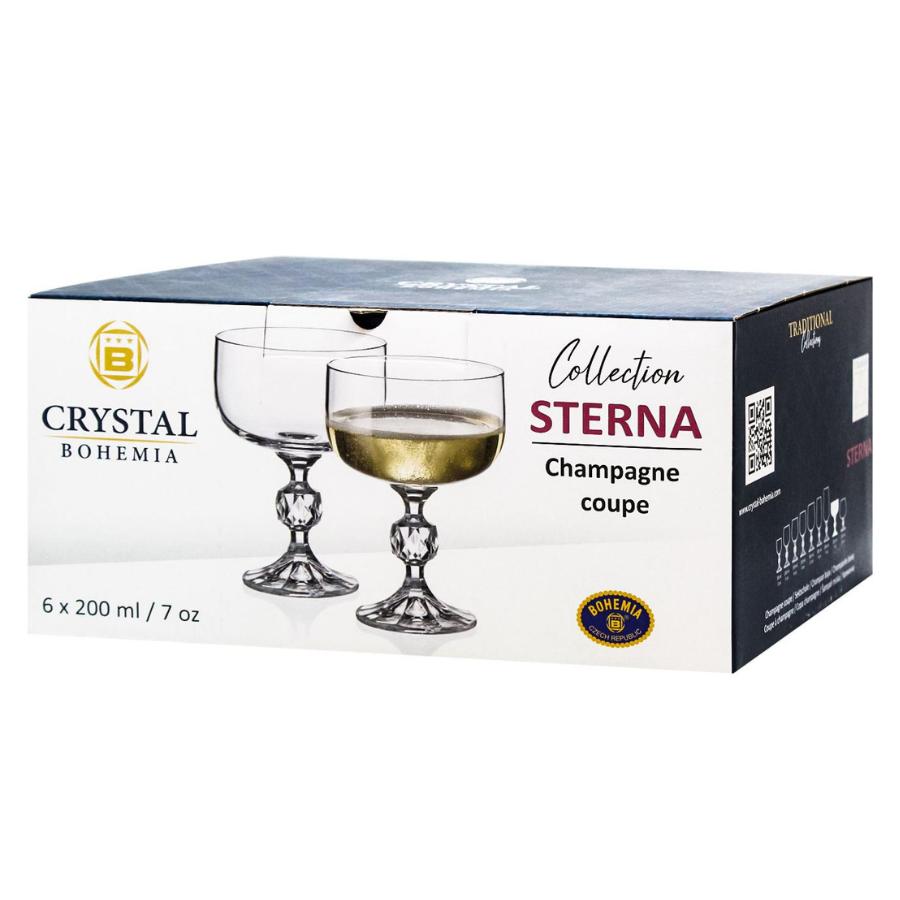 Set contine 6 pahare din sticla cristalina de Bohemia pentru sampanie cupa 200 ml (gama STERNA)