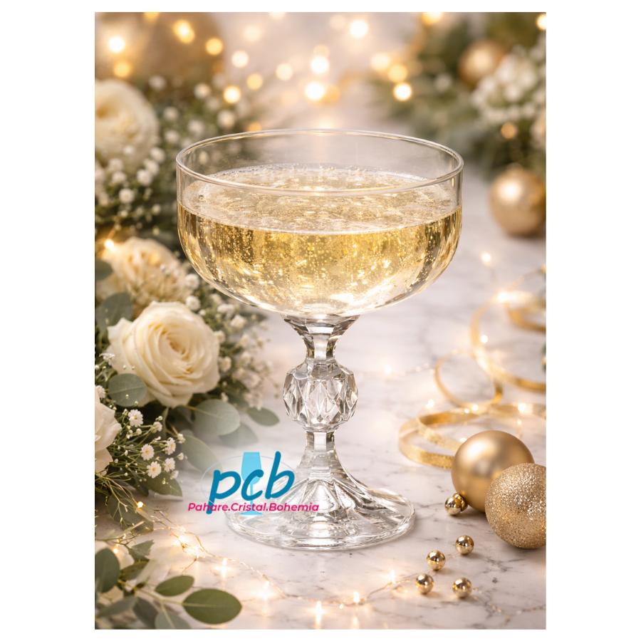 Pahare STERNA de sampanie din sticla cristalina impresioneaza printr-un design elegant si rafinat, inspirat din stilul clasic al cupelor de sampanie. Aceste pahare ofera o prezentare sofisticata bauturilor, fiind ideal pentru sampanie sau cocktailuri servite intr-un mod spectaculos.