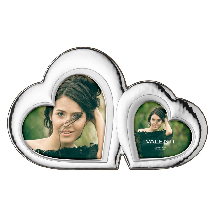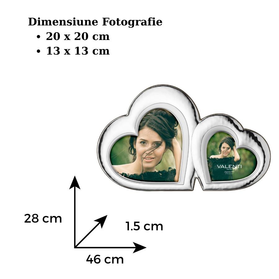 Rama foto eleganta, placata cu argint (strat de argint cu puritate 999‰), disponibila in dimensiunile 13×13 cm si 20×20 cm, cu un design romantic in forma de inima, reprezinta o alegere ideala pentru un cadou de cuplu, potrivit pentru aniversari sau logodna.