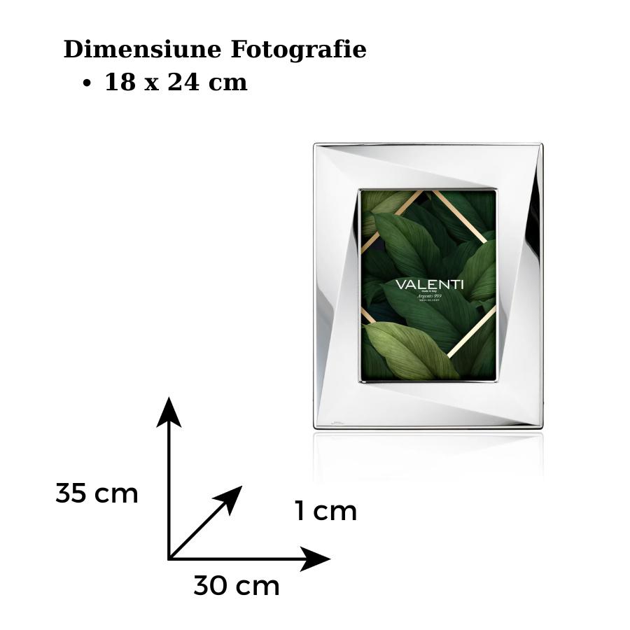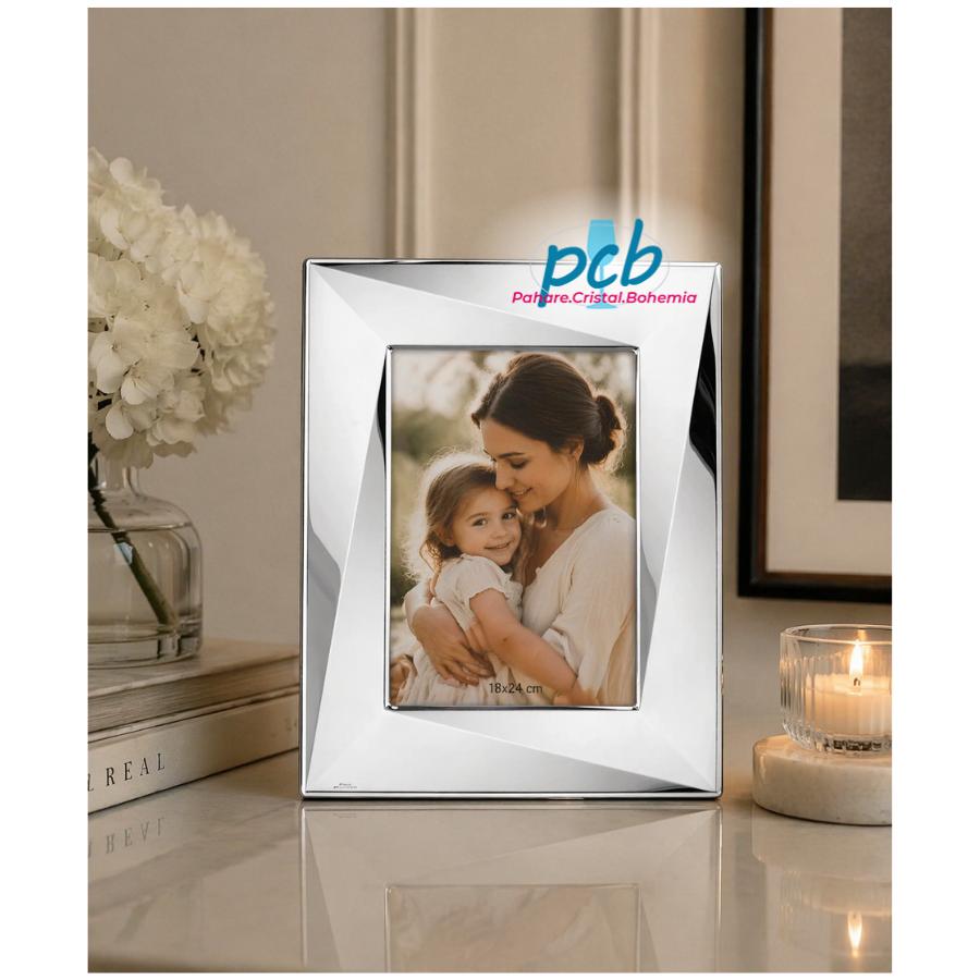 Rama foto „Moderno”, placata cu argint (strat de argint cu puritate 999‰), este conceputa pentru a oferi eleganta si stil oricarui spatiu, punand in valoare cele mai dragi amintiri.