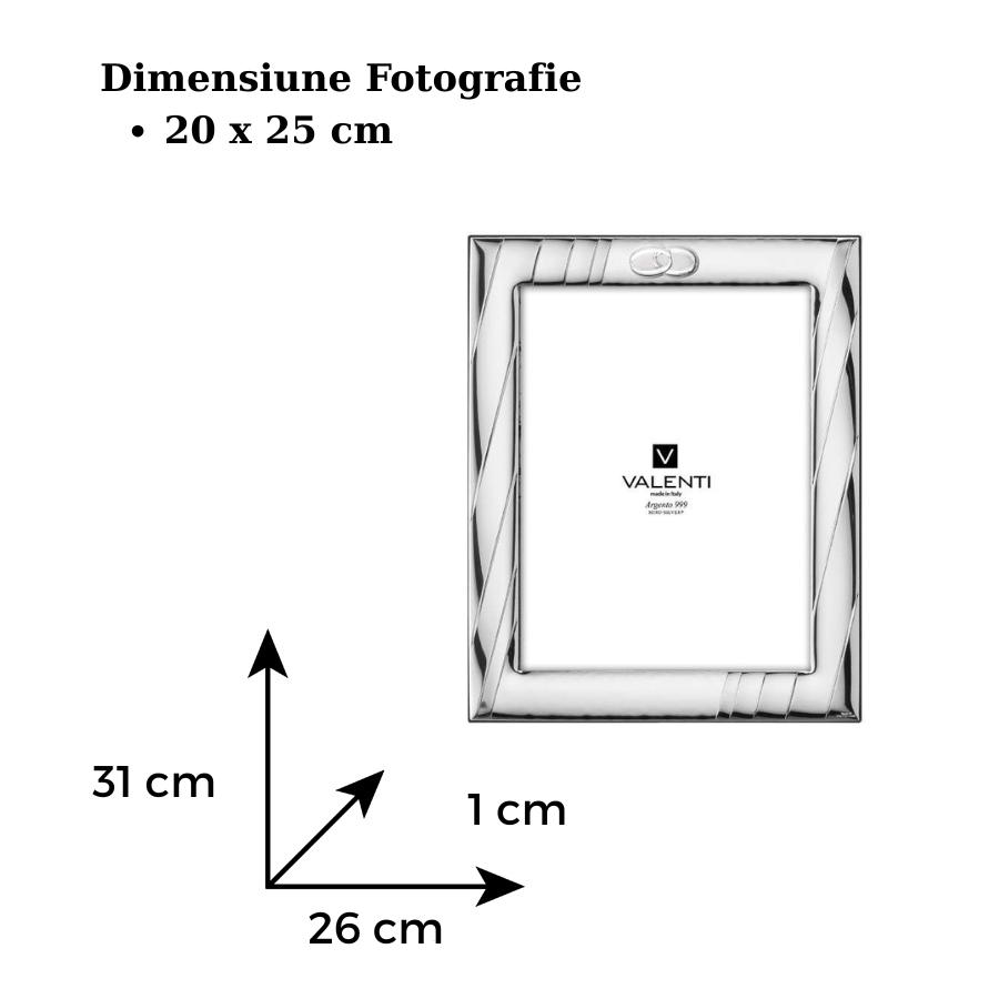 Rama foto „ROMA”, placata cu argint (strat de argint cu puritate 999‰), este conceputa pentru a oferi eleganta si stil oricarui spatiu, punand in valoare cele mai dragi amintiri.