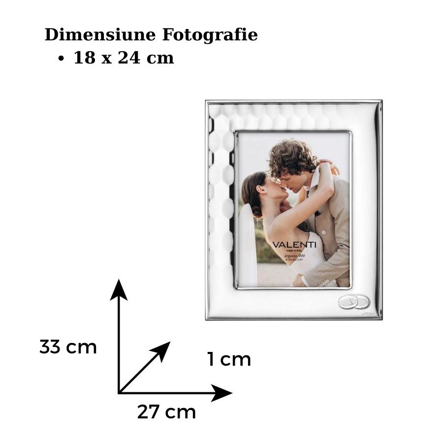 Rama foto „Fagure”, placata cu argint (strat de argint cu puritate 999‰), este conceputa pentru a oferi eleganta si stil oricarui spatiu, punand in valoare cele mai dragi amintiri.