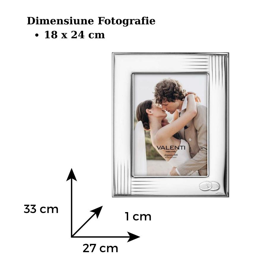 Rama foto „Torino”, placata cu argint (strat de argint cu puritate 999‰), este conceputa pentru a oferi eleganta si stil oricarui spatiu, punand in valoare cele mai dragi amintiri.