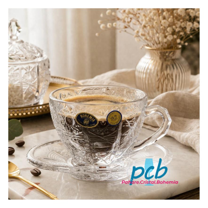 Introducere »Cristal» Set 6 cesti cristal cafea cu farfuriuta 200 ml