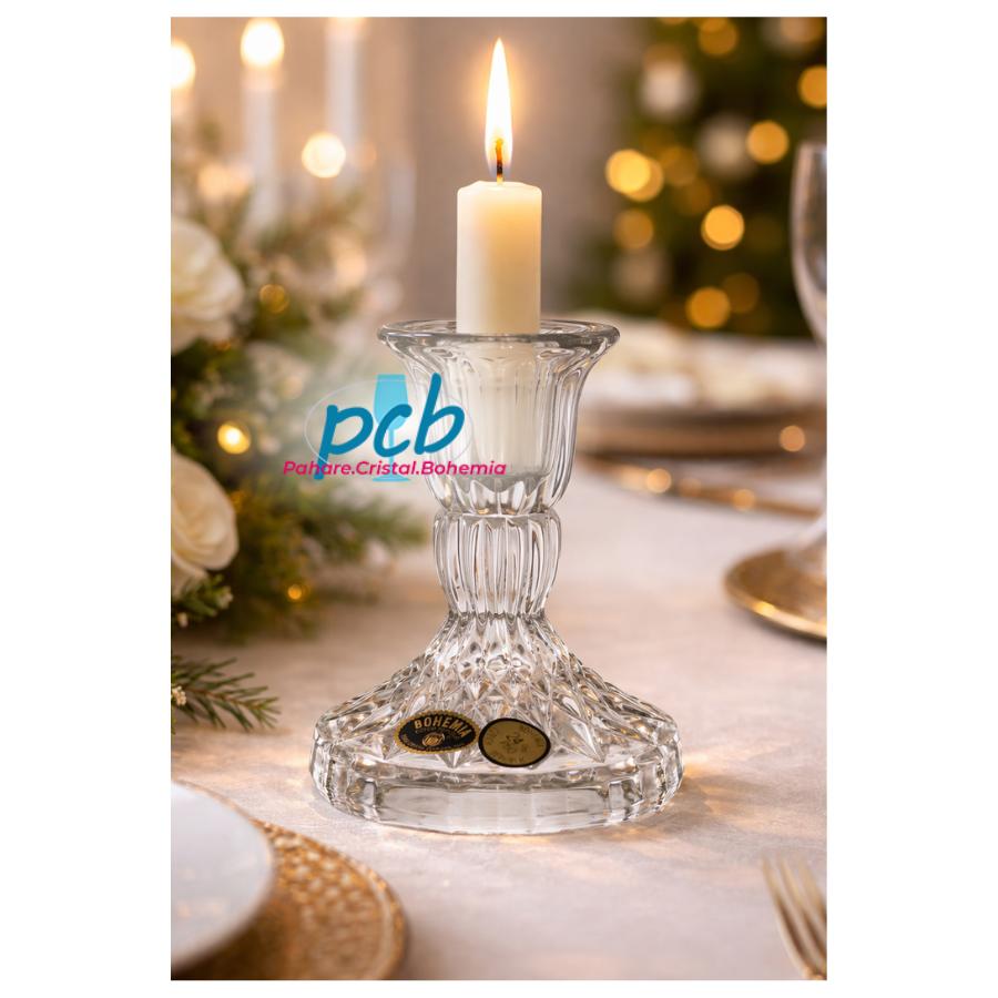 Acest sfesnic din cristal impresioneaza prin designul sau elegant si atent lucrat, fiind o piesa decorativa ideala pentru aranjamente festive sau spatii rafinate. Fabricat din cristal Bohemia, cu detalii decorative bine definite, capteaza si reflecta lumina, oferind un efect subtil de stralucire, este usor de integrat in orice decor, adaugand un accent stilat fara a domina vizual spatiul. Forma sa clasica, il recomanda atat pentru interioare moderne, cat si pentru cele traditionale.