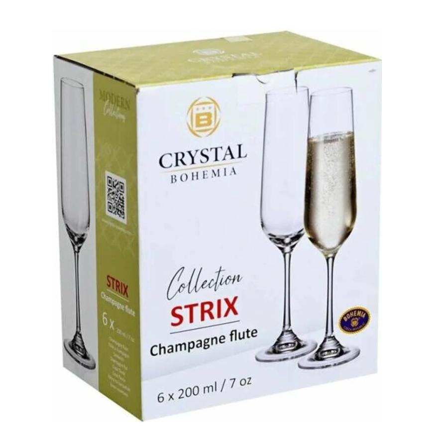 Introducere »Cristalin» STRIX - Set 6 pahare sticla cristalina Bohemia sampanie 200 ml
