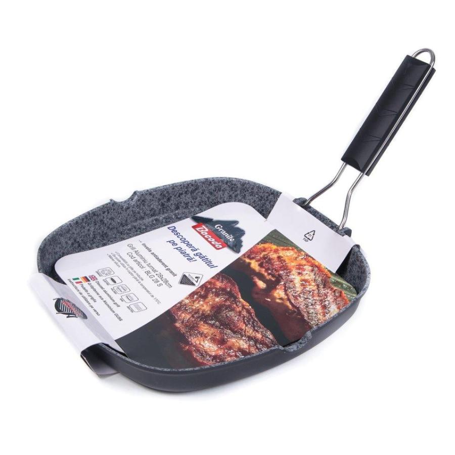 Grill aluminiu turnat 28*28 cm cu invelis antiaderent GRANIT (marca BACODA)